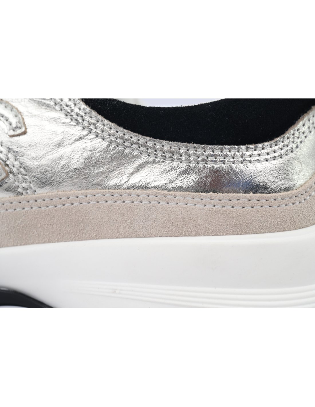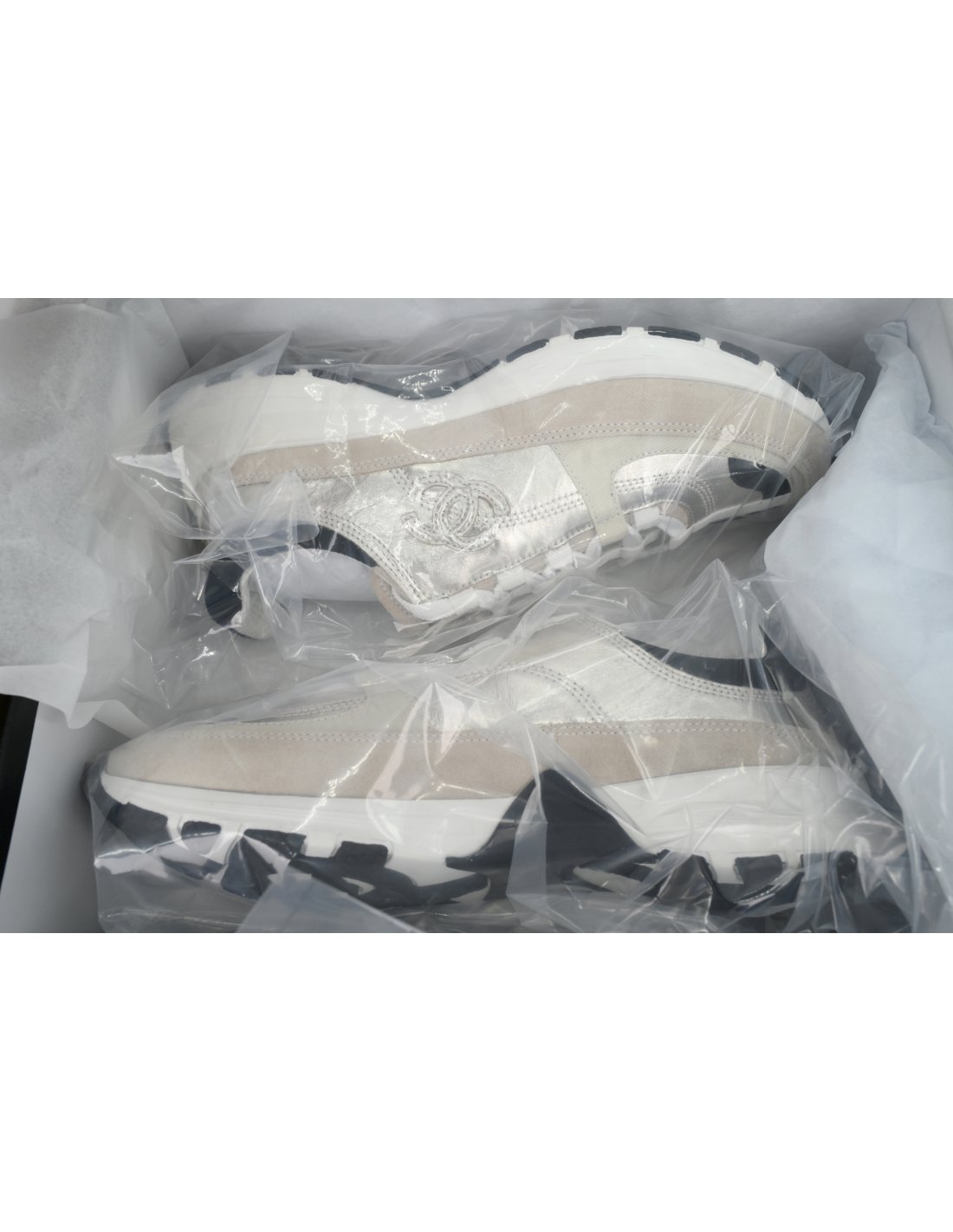 Chanel Interlocking CC Logo Laminated Calfskin Suede Calfskin Sneakers Light Gold, Light Gray Black