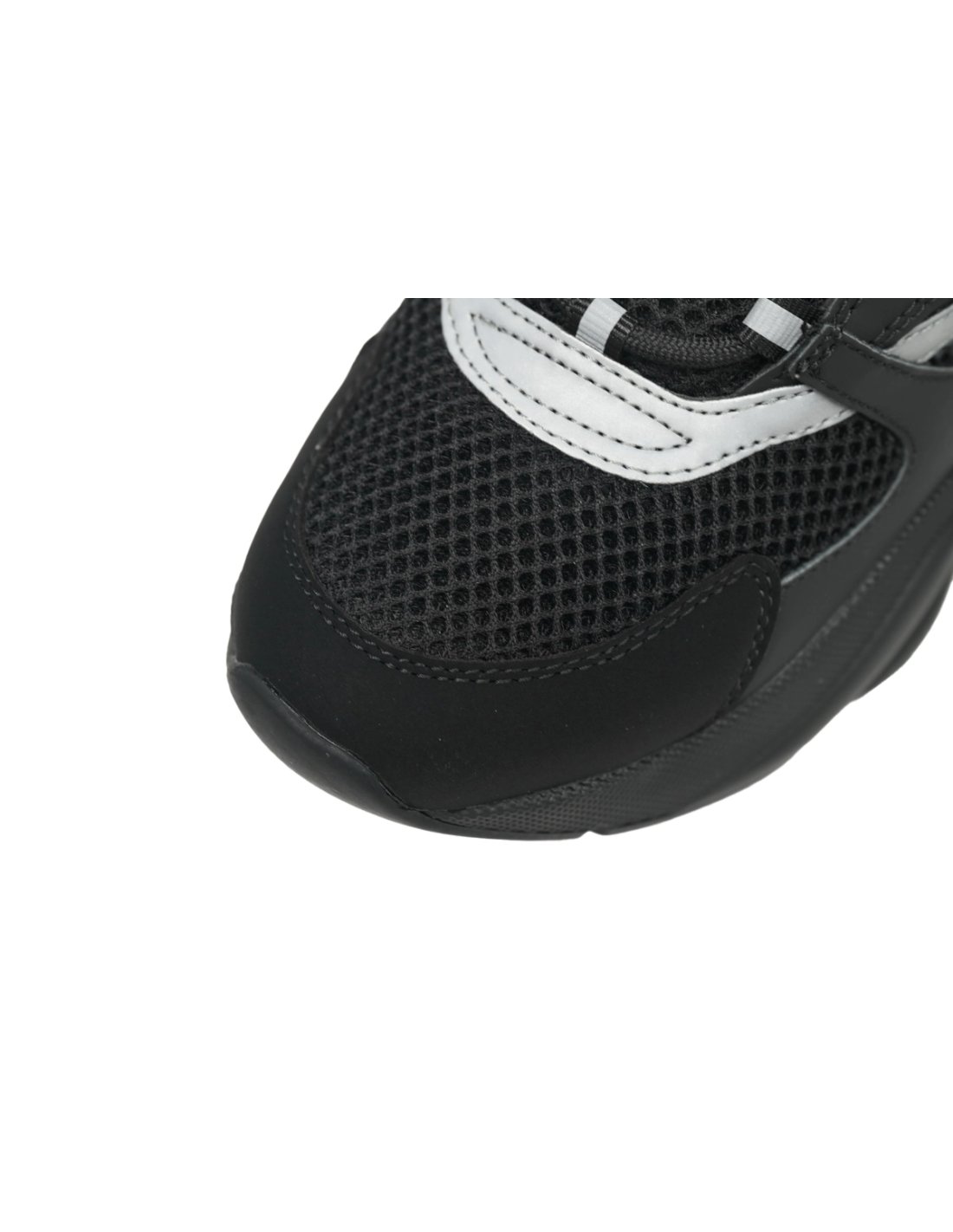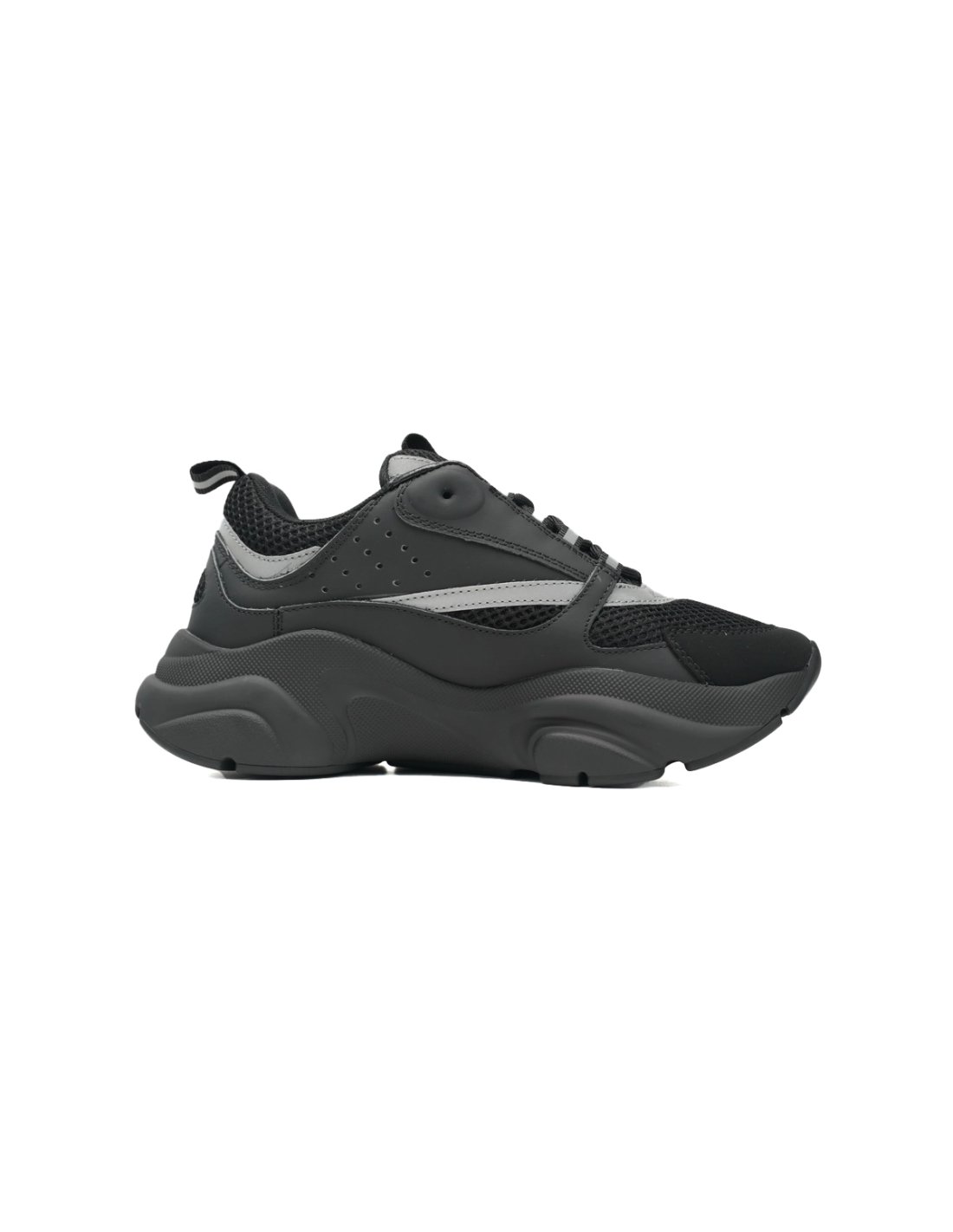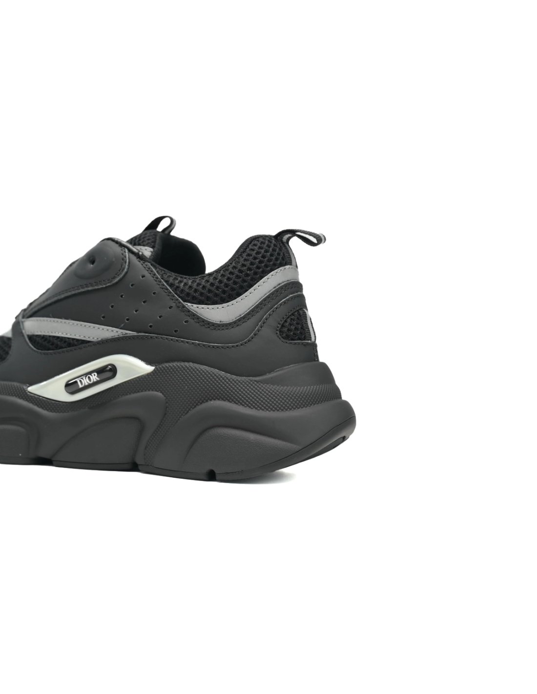 • Style DetailsColor: Black/SilverMaterial: Leather, mesh, and reflective fabricThick, sculpted rubber sole provides added cushioning and tractionEmbroidered "DIOR" signature on the sidePadded tongue and heel for everyday comfort