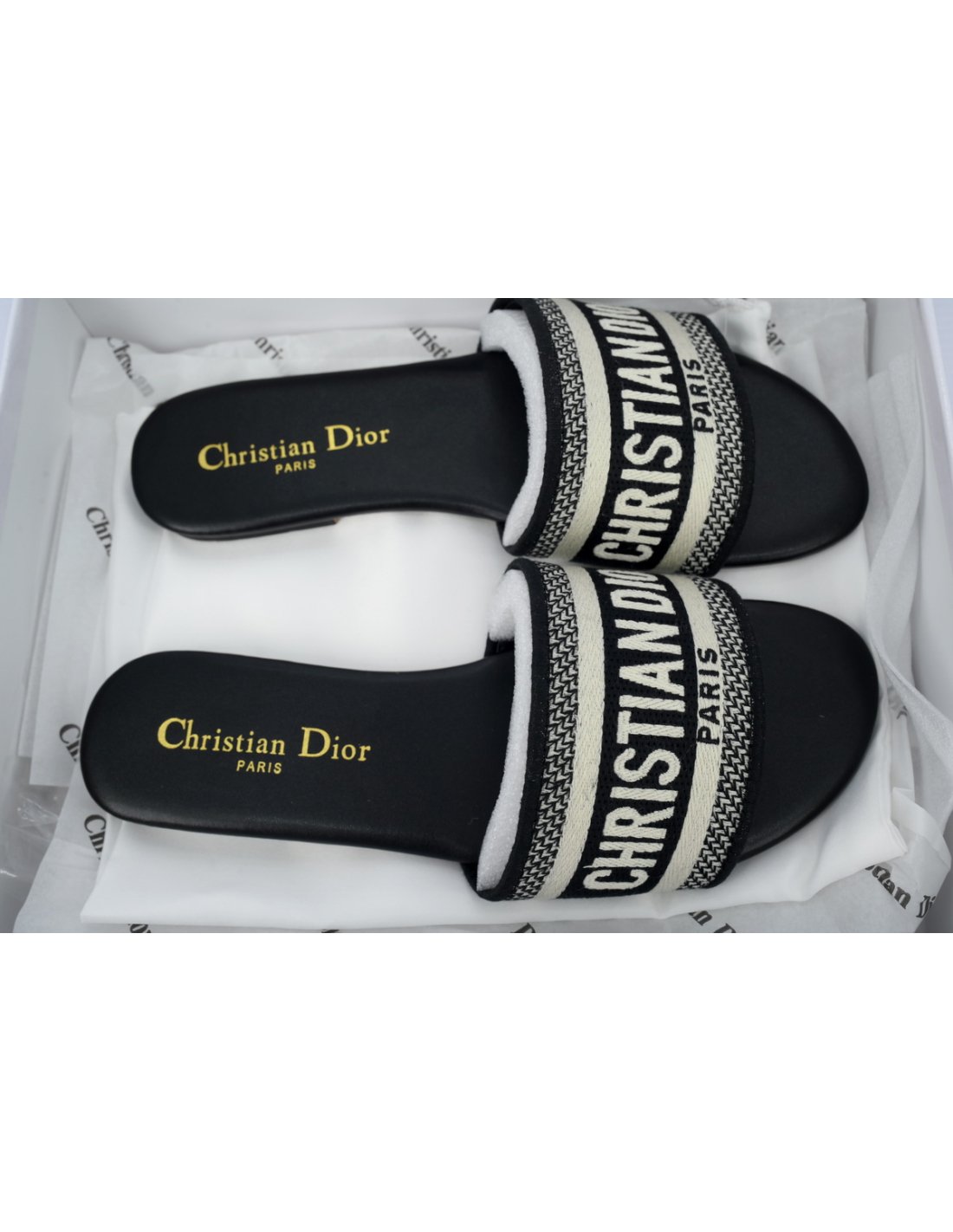 New Please Choose Your Size Dior Slippers Dior Oblique Flat Sandals Mules Shoes Logo Black Beige $129.00 View
