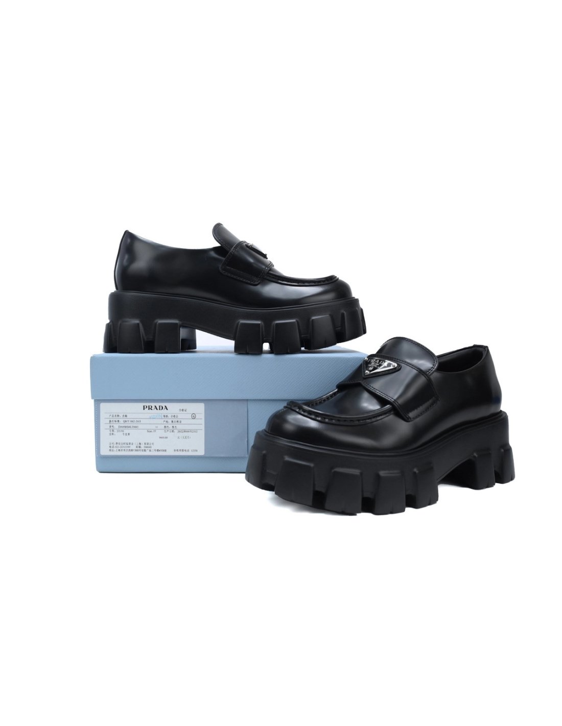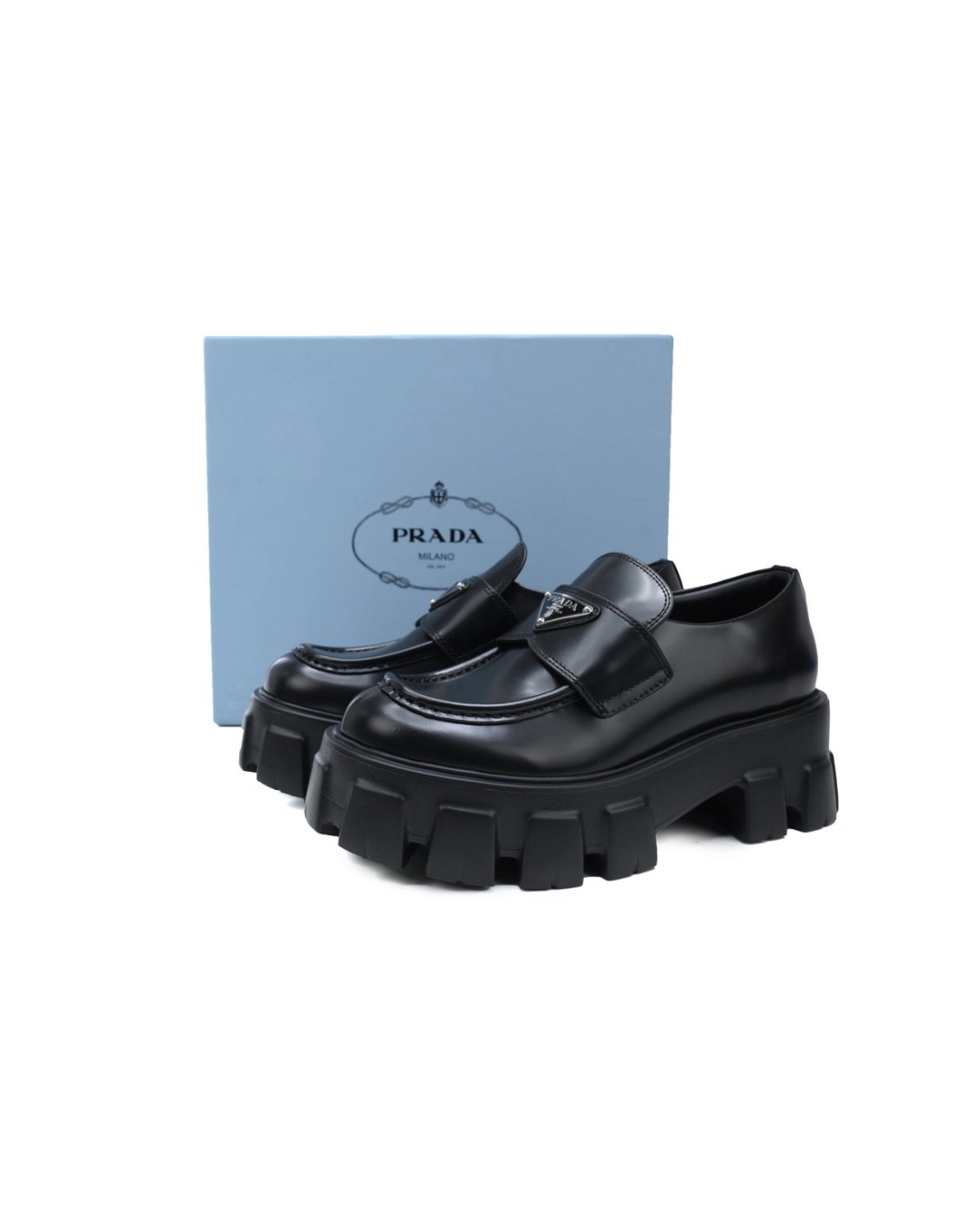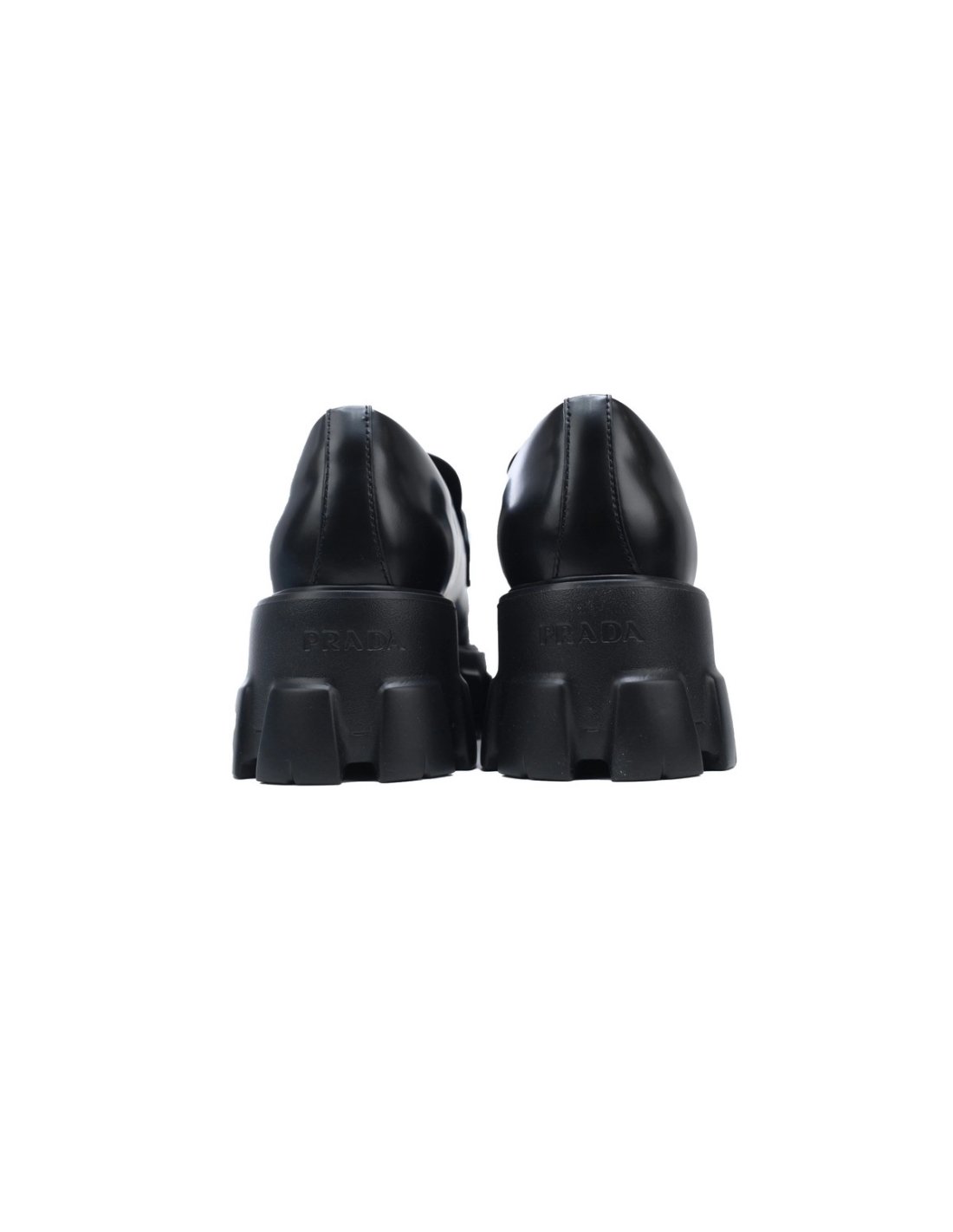 New Please Choose Your Size PRADA Prada Monolith Triangle Logo Leather Platform Loafers Black $159.00 View
