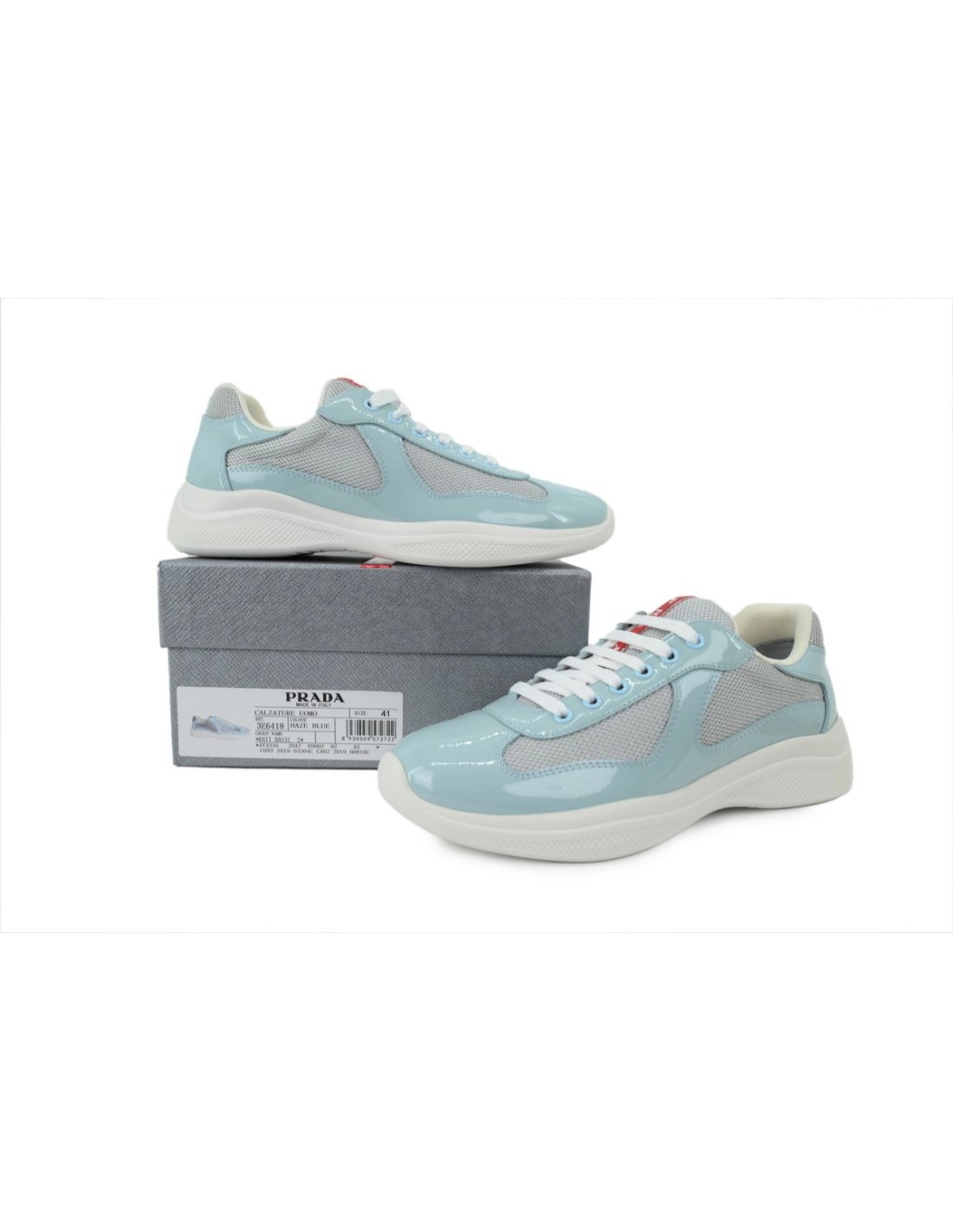 Prada Americas Cup Sneakers Patent Leather Sky Blue